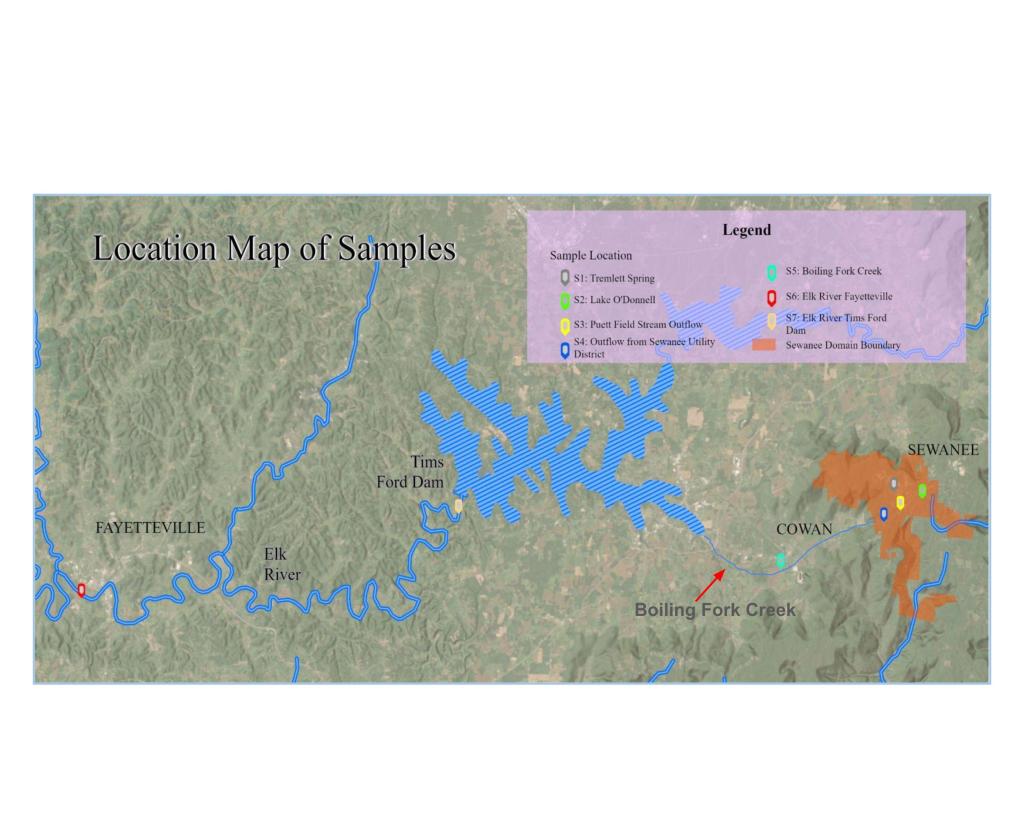 - S4: Outflow from Sewanee Utility District (municipal sewage treatment plant)